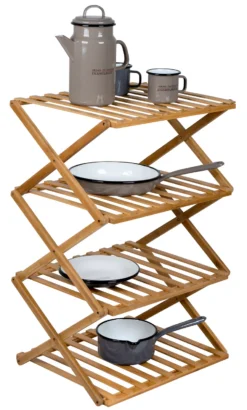 Deze prachtige legkast is afkomstig van het topmerk Bo-Camp en gemaakt van een hoogwaardige kwaliteit bamboe. Dankzij de handige scharnieren is deze kast zeer gemakkelijk in te klappen. Perfect voor op vakantie dus! Dit model heeft 4 planken, zodat u al uw spullen gemakkelijk kwijt kunt. U kunt hem gebruiken voor uw kookgerei, maar bijvoorbeeld ook als schoenenkast of voor die heerlijke Italiaanse wijnen. Een echte multifunctionele, handige maar ook mooie kast!