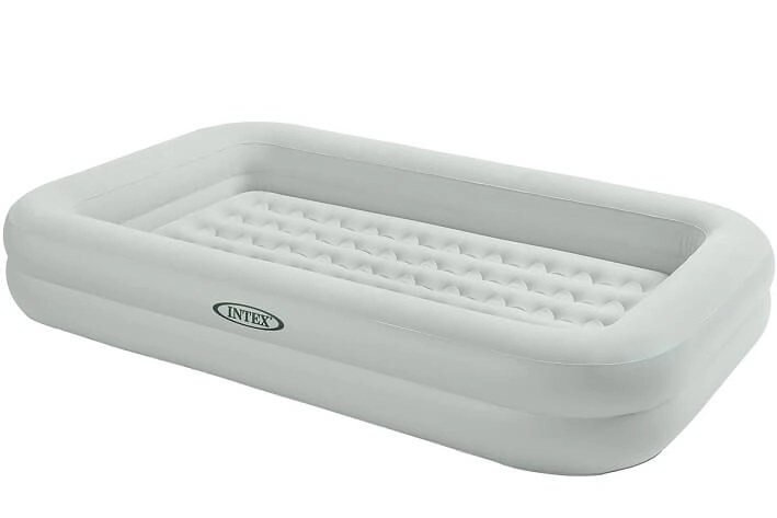 Dit handige luchtbed van Intex is de Kidz Travel en dit luchtbed zorgt dat uw zoon of dochter heerlijk comfortabel en veiliger kan slapen op reis. Dit luchtbed is gemaakt van heerlijk zacht en comfortabel geborsteld PVC wat zorgt voor veel comfort en een zacht gevoel. Om het comfort nog meer te verhogen heeft het bed een geribbeld patroon. Dit matras licht in een zachte beschermende kuip die zorgt dat uw kind in bed zal blijven liggen.